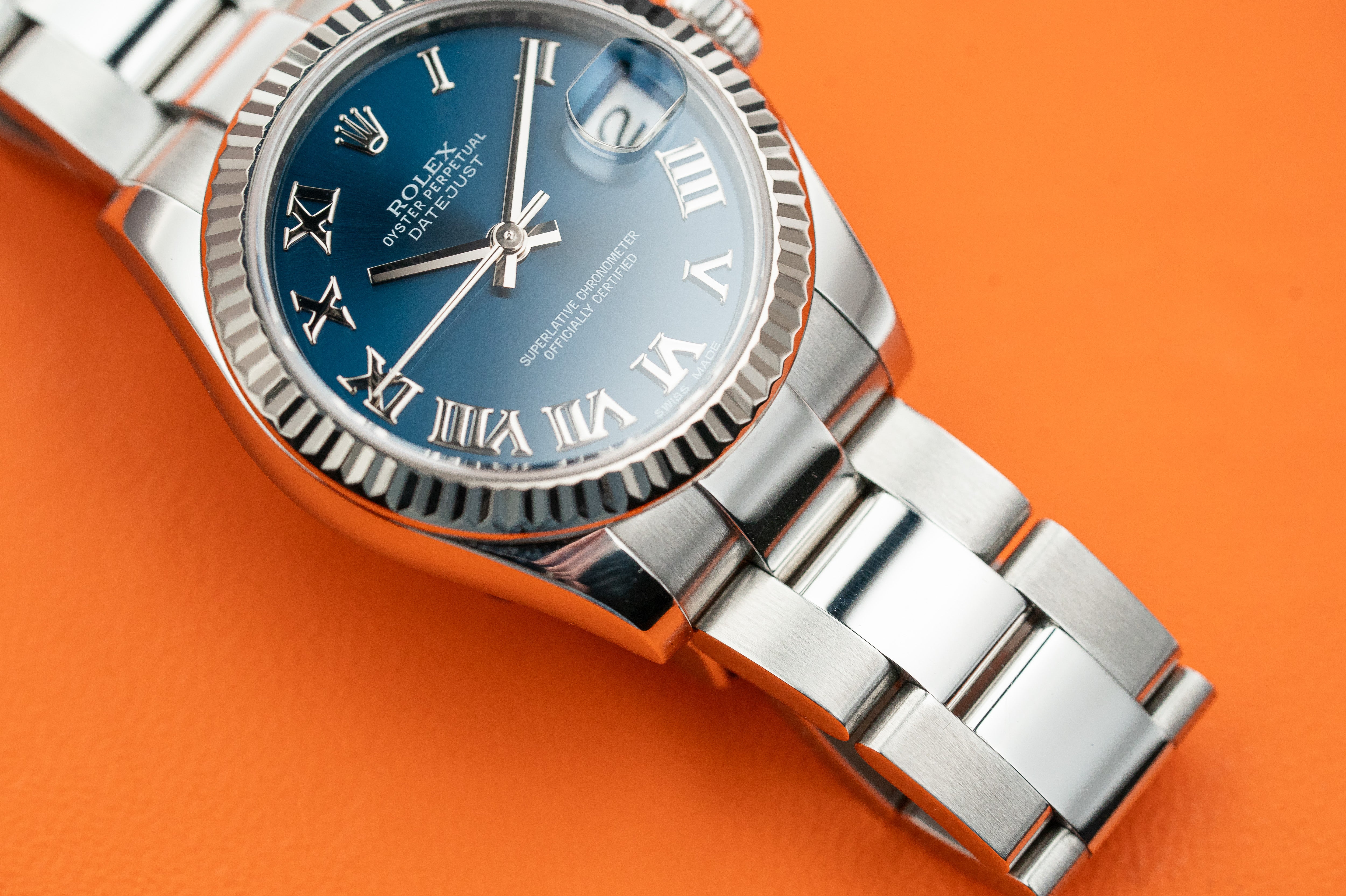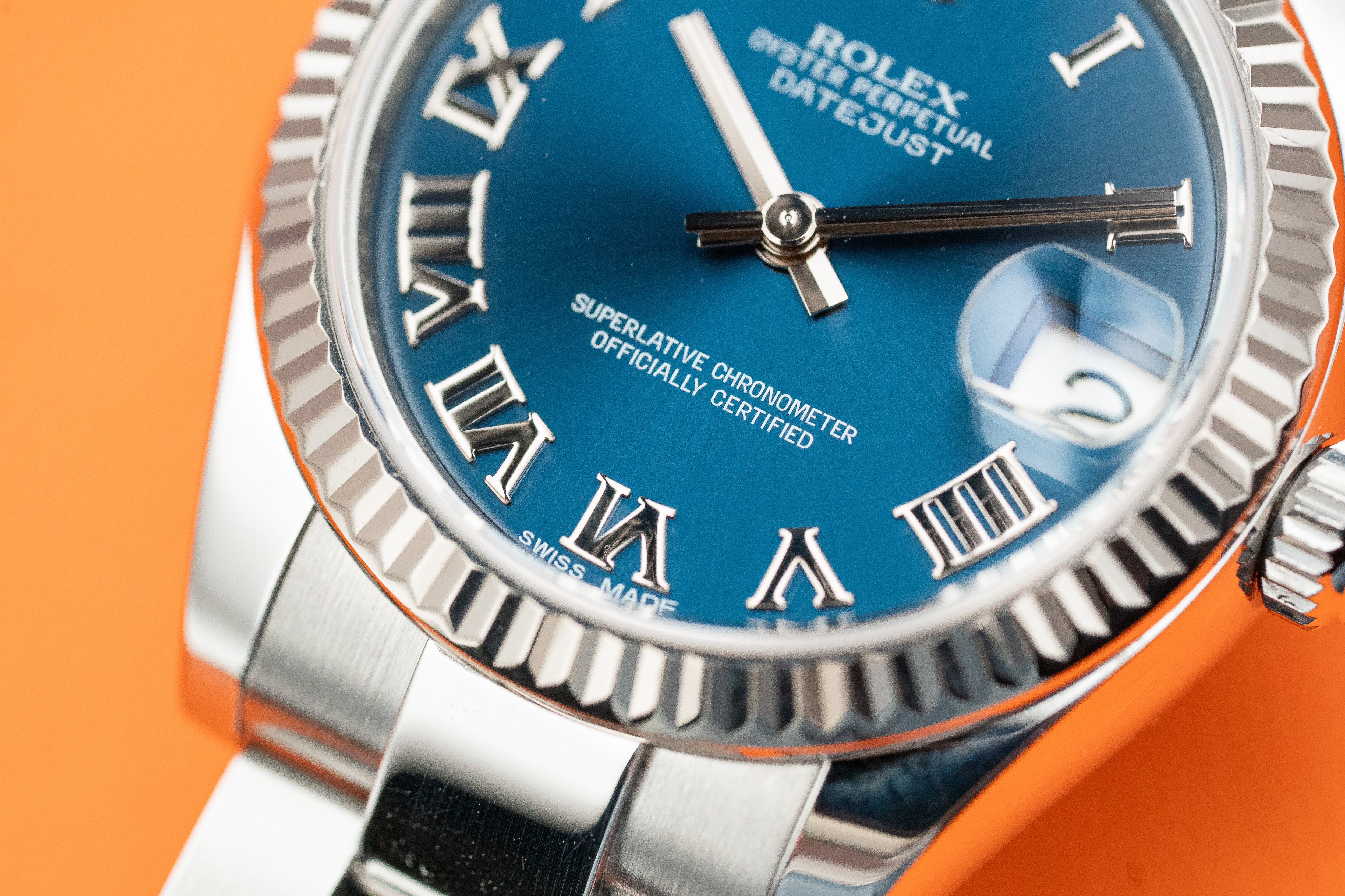 Rolex Datejust 31mm 178274 Fluted Bezel 18k White Gold Blue Roman numerals Oyster Bracelet 2015
