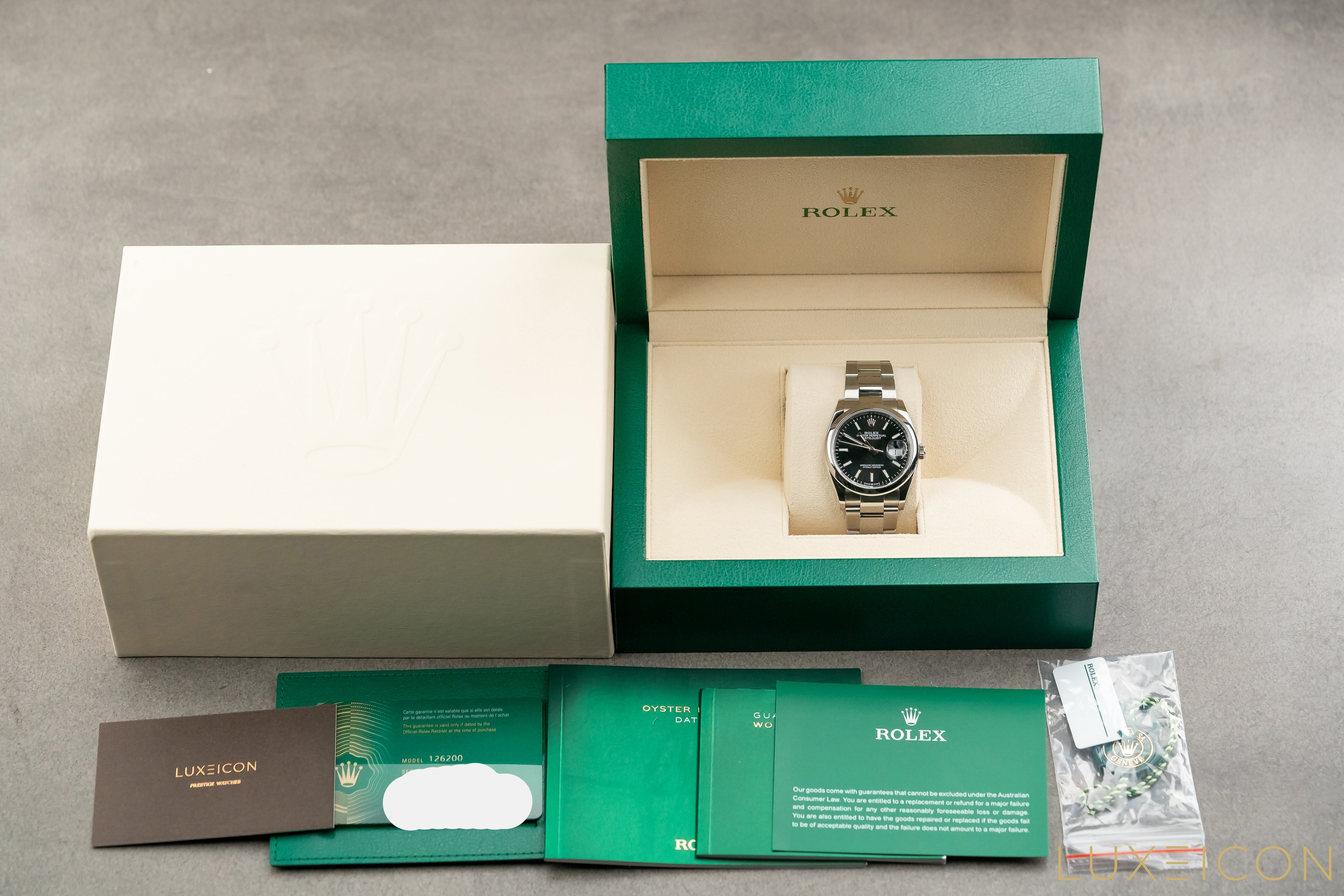 Rolex Datejust 36mm 126200 Domed Smooth Bezel Black Index Dial Oyster Bracelet 2021