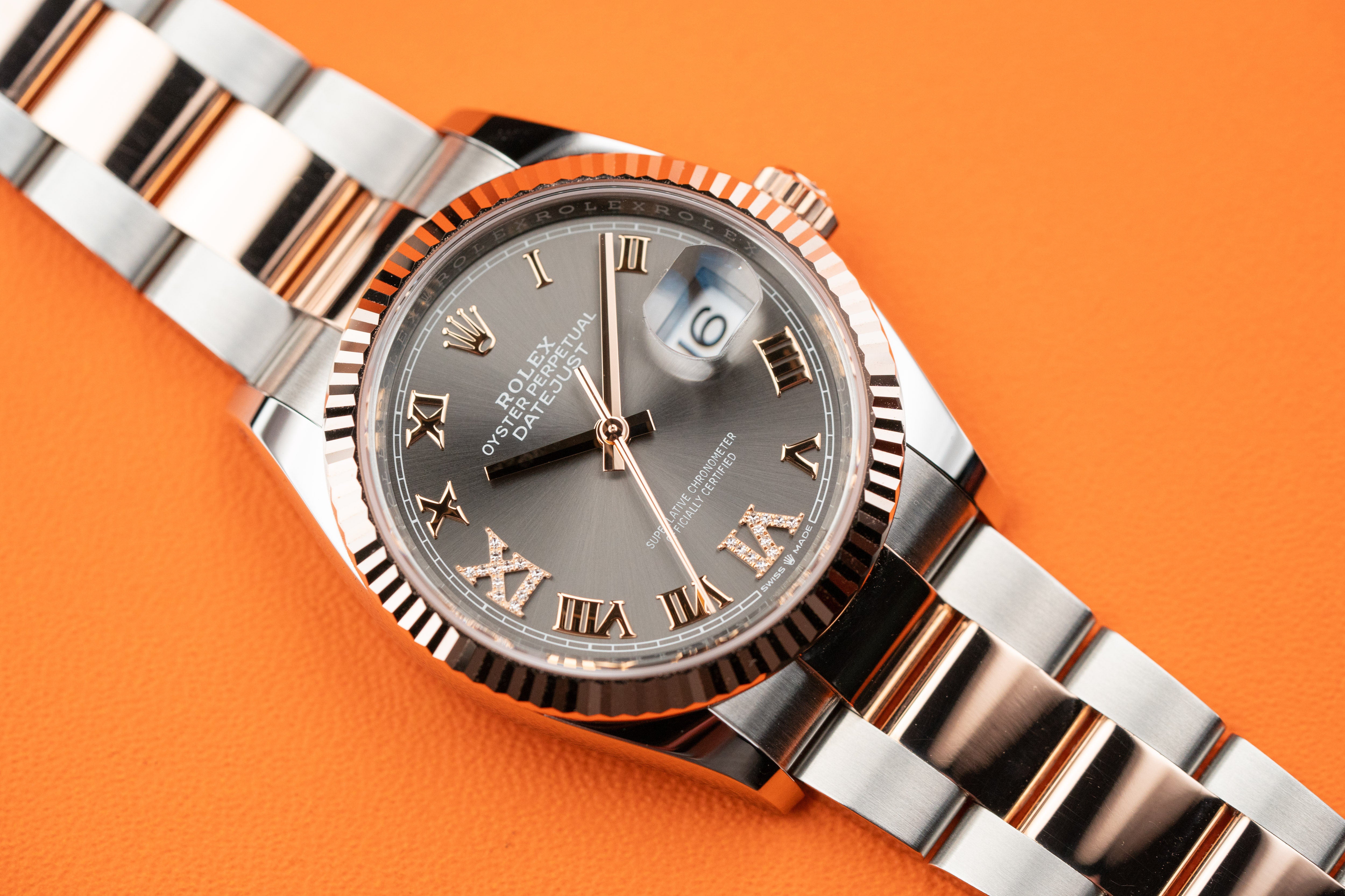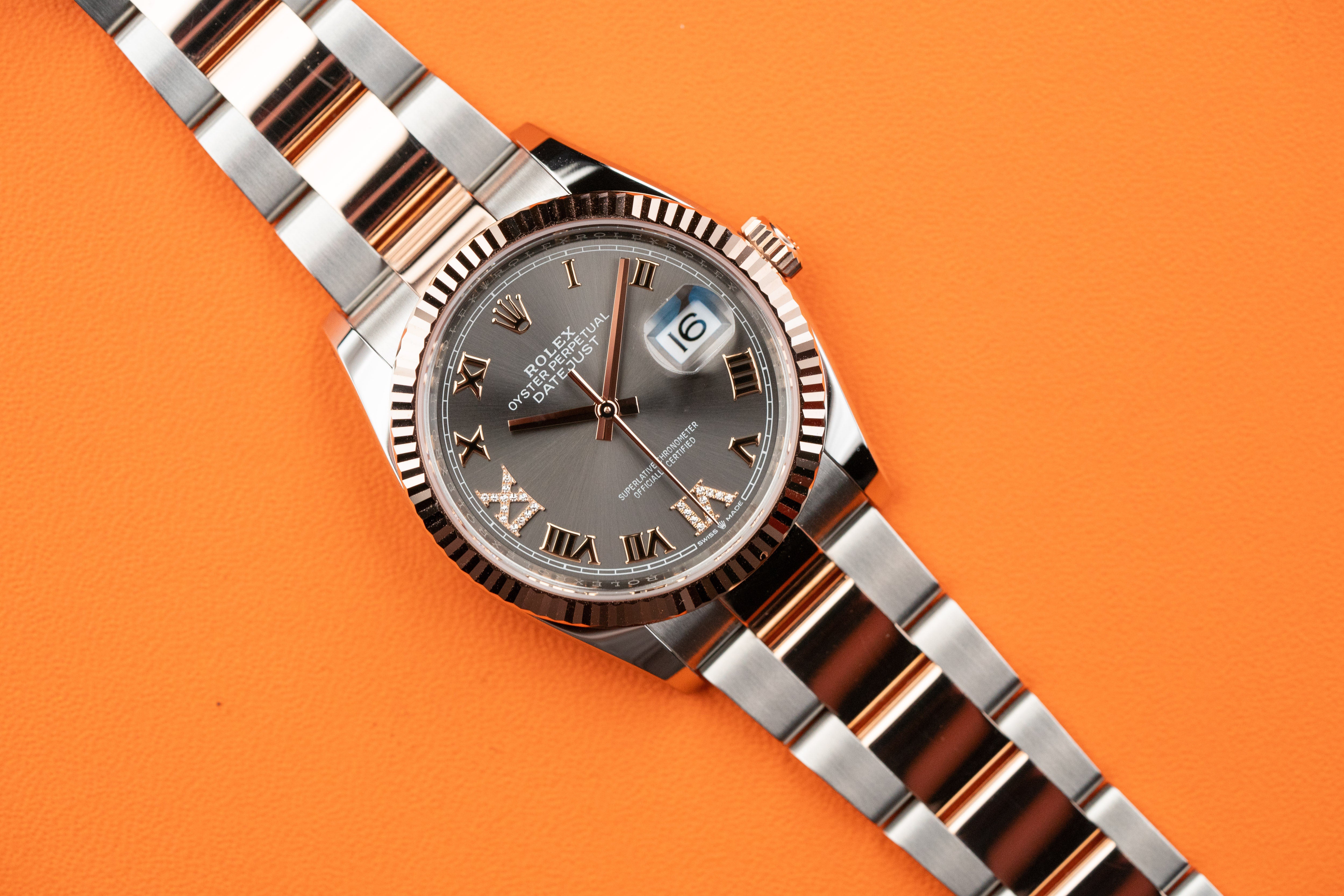 Rolex Datejust 36mm Everose Rolesor Slate Diamond Roman Oyster 126231-0024 2022