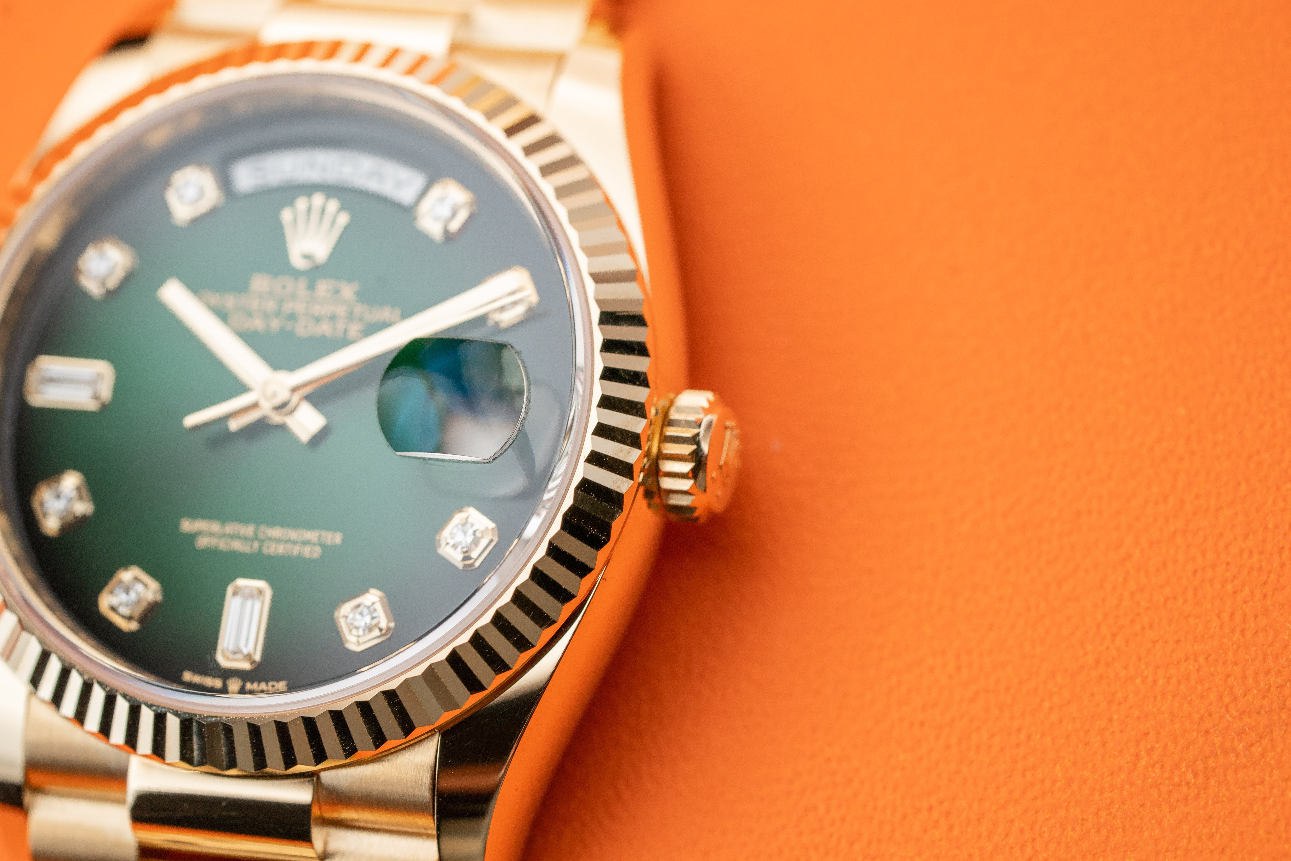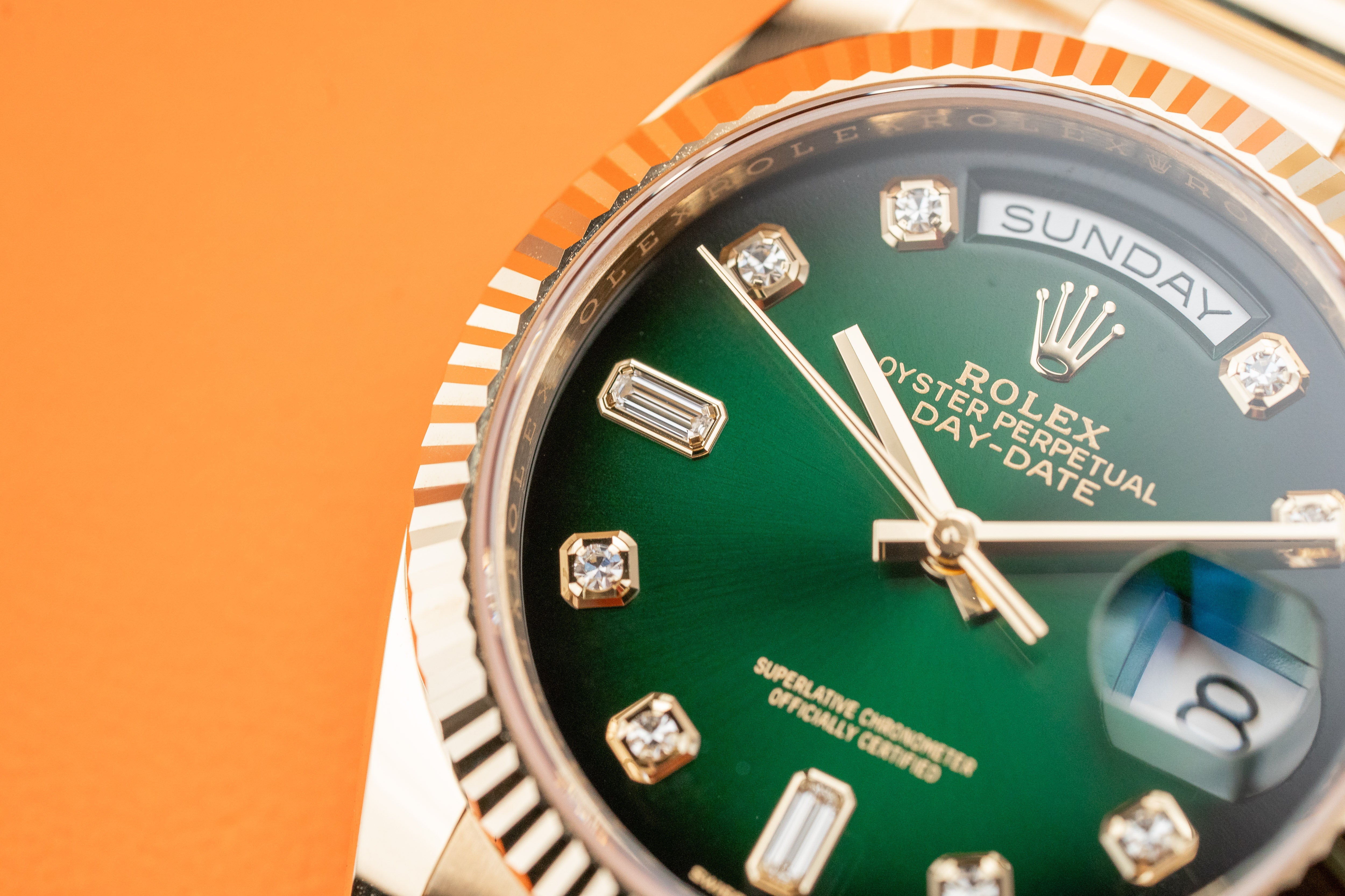 Rolex Day-Date President 36mm 128238 Yellow Gols Green Ombre Diamond Dial 2023
