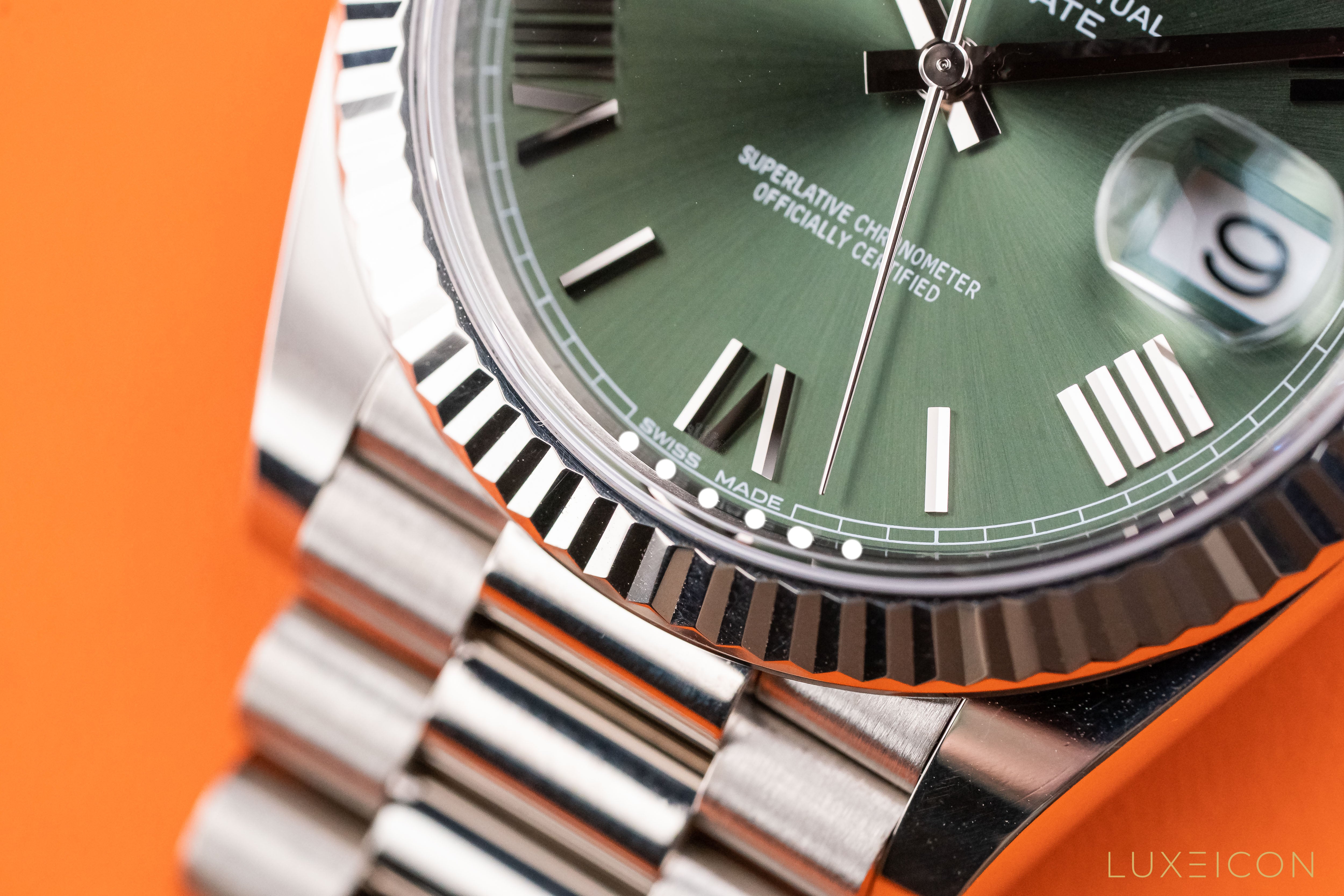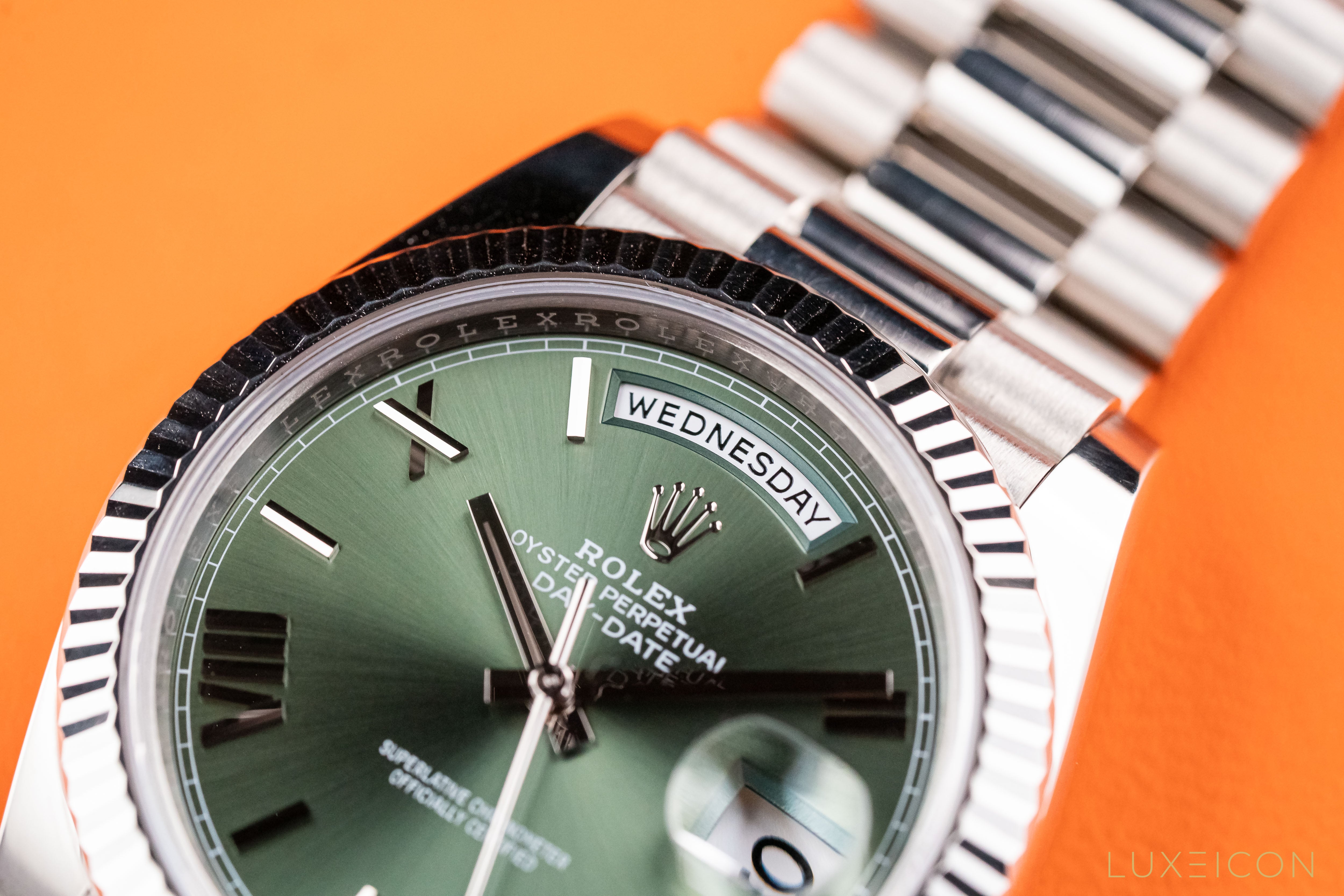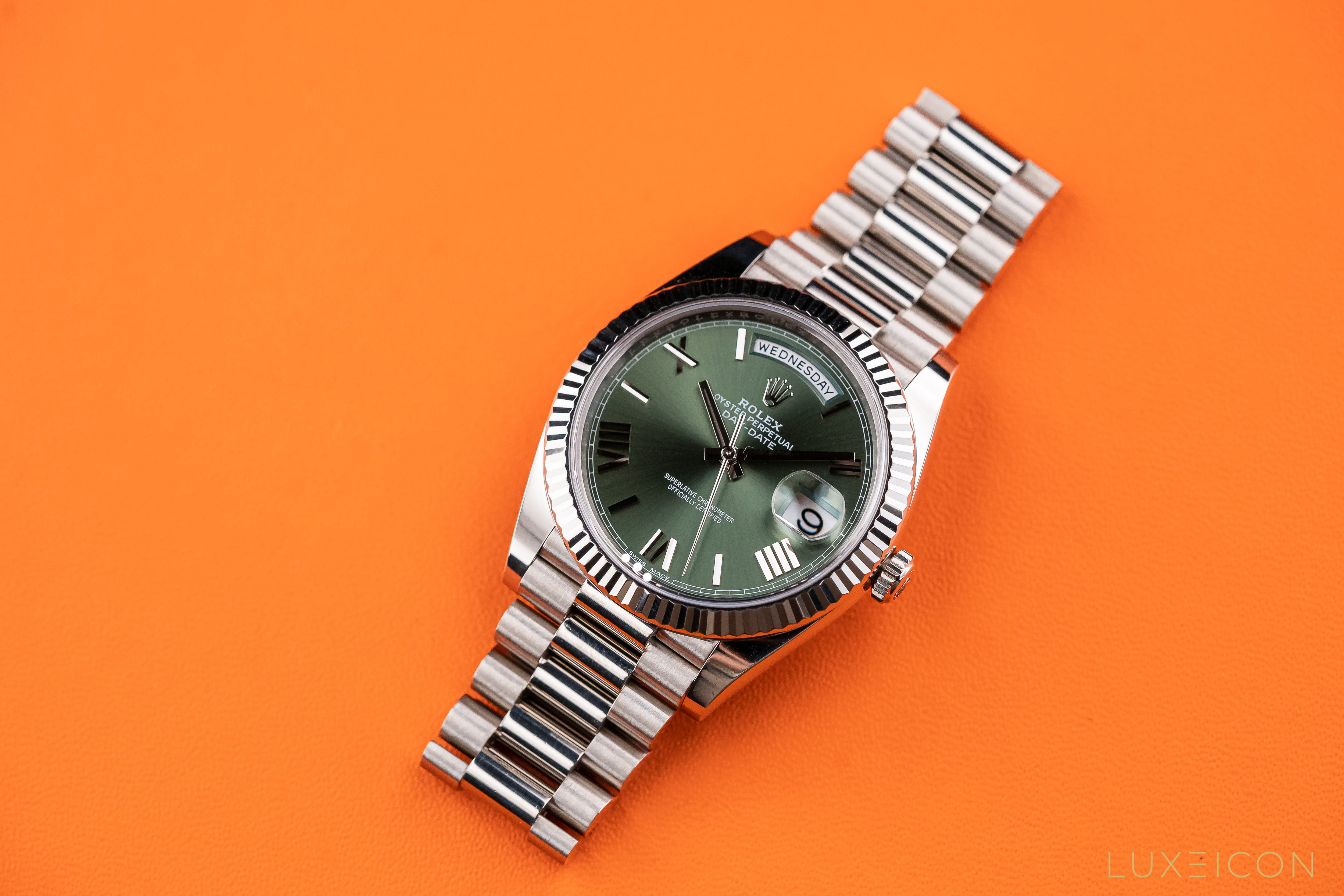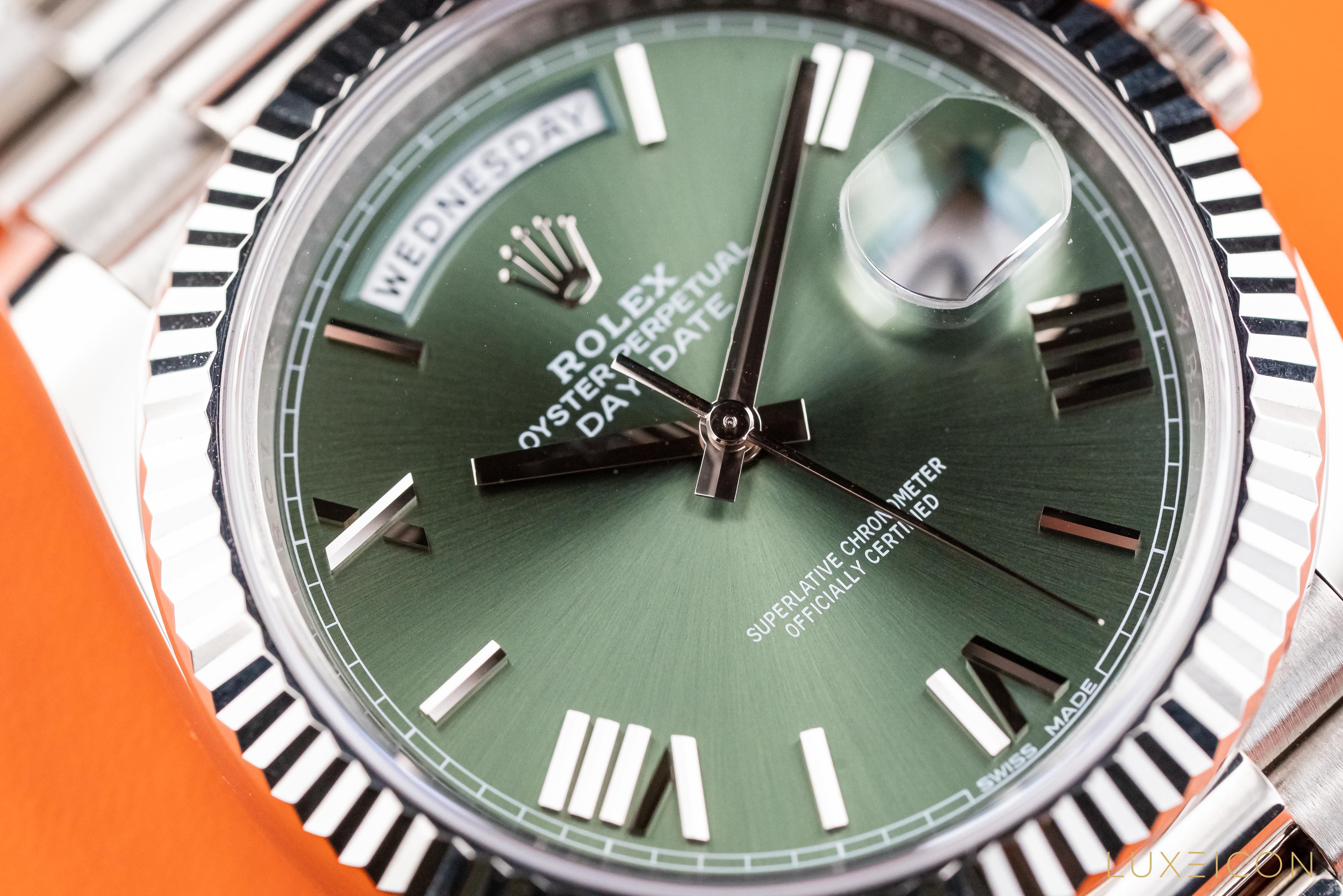 Rolex Day-Date President 40 White Gold Olive Green Roman Dial 228239