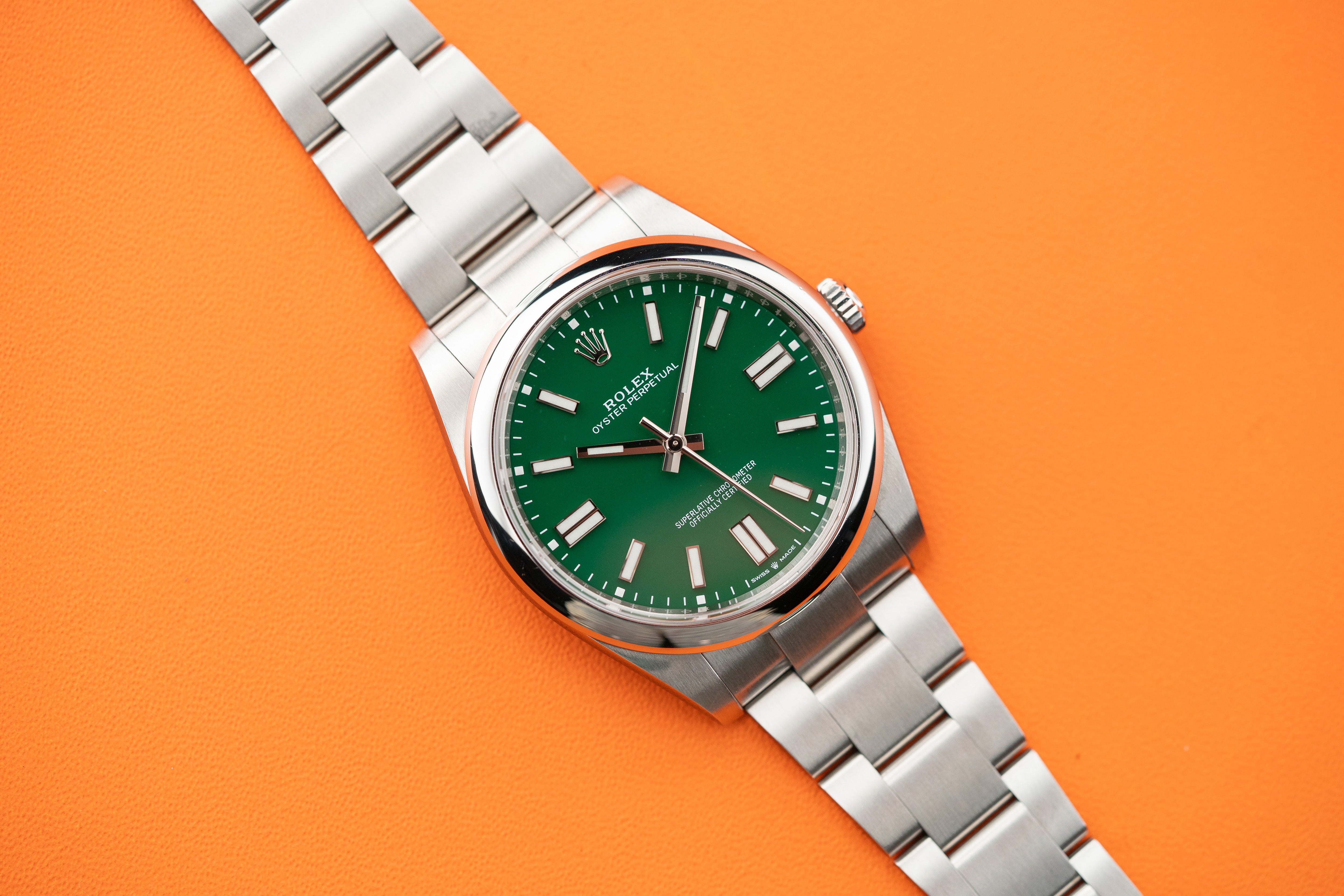 Rolex Oyster Perpetual 124300 41mm Green Index Dial Smooth Bezel 2022